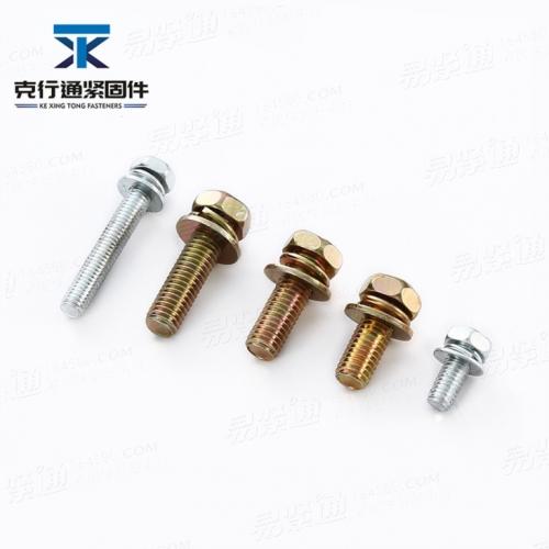 GB9074.17彩锌凹脑十字组合螺丝 十字槽外六角组合螺丝 平弹垫组合螺丝